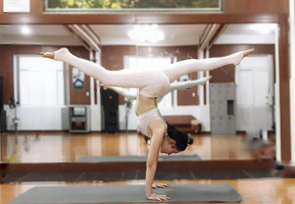 Cô đã thuần thục nhiều động tác khó của yoga.