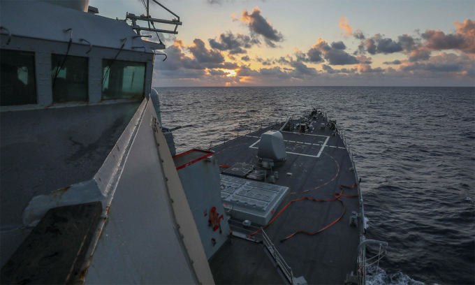 Khu trục hạm USS Benfold di chuyển gần quần đảo Hoàng Sa của Việt Nam ngày 20/1. Ảnh: US Navy.
