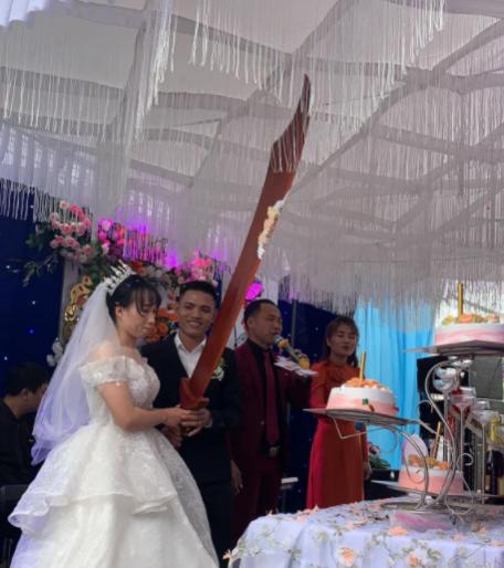 ‘Lần đầu thấy cô dâu chú rể cầm đao to đùng cắt bánh cưới, không biết ý tưởng của ai mà sáng tạo thế không biết.’