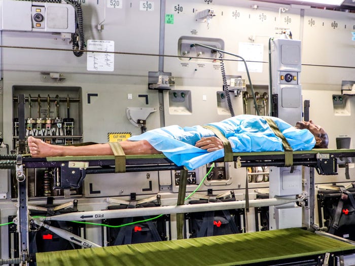 C-17 cũng có khả năng sơ tán y tế, với khu vực riêng được đặt trong khoang hàng hóa. Lực lượng Không quân Mỹ thường thực hiện chuyến bay sơ tán y tế với hai y tá và ba kỹ thuật viên y tế.