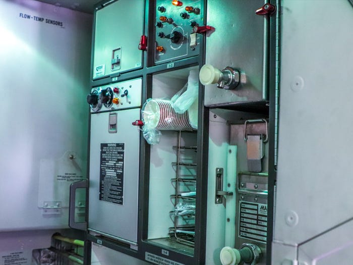 Và ít nhất nó cũng có một máy pha cà phê, dù không được trưng bày theo kiểu hàng không hoàn chỉnh.