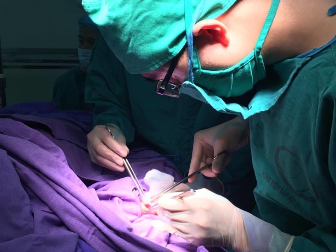 Để cứu bệnh nhi, kíp mổ đã chuyển toàn bộ gan và ruột nằm trên lồng ngực phải về vị trí bình thường tại ổ bụng, đồng thời tái tạo toàn bộ cơ hoành phải.