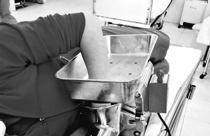 Người nhà bệnh nhân Đ. cho biết, trong khi xay thịt bằng máy xay điện, chị Đ. bất ngờ bị cuốn nguyên bàn tay vào trong máy.