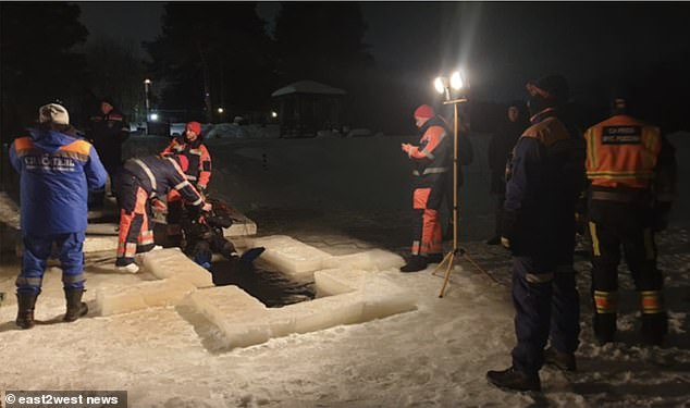 Alexander Zuyev, người đứng đầu cơ quan cứu hộ khẩn cấp của Nga, nói việc đặt hố băng ở điểm mà dòng chảy mạnh là điều rất nguy hiểm.