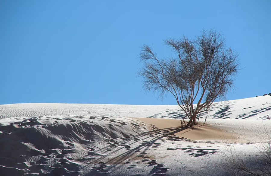 Tuyết rơi, băng phủ trên các cồn cát là một hiện tượng hiếm gặp ở sa mạc lớn nhất thế giới – Sahara, nơi luôn có nhiệt độ cao lên tới 58 độ C.