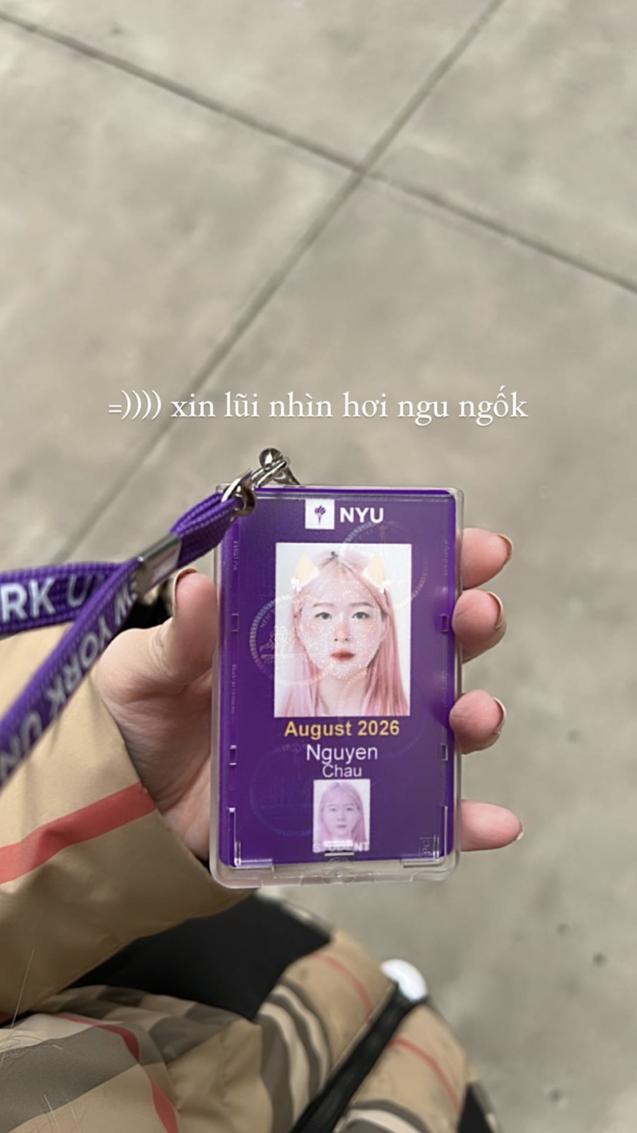 Mới đây, Châu Anh đã chia sẻ ảnh chụp thẻ sinh viên trên trang cá nhân - một thẻ yêu cầu bắt buộc dành cho sinh viên đại học New York. Vẫn là mái tóc hồng đặc trưng cùng gương mặt ưa nhìn. Có thể thấy dù chụp ảnh thẻ nhưng cũng không dìm được nhan sắc của nữ sinh này!
