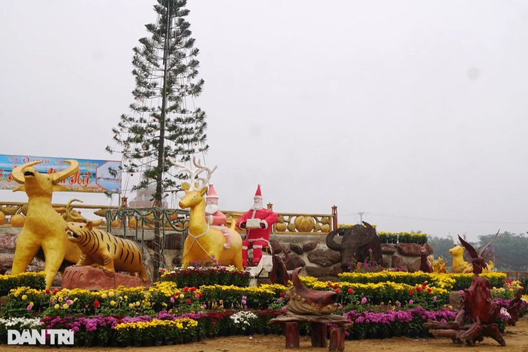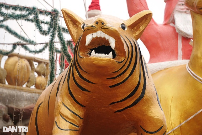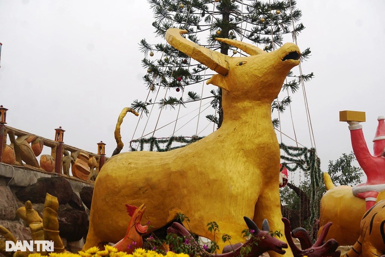 Ghi nhận của PV Dân trí vào chiều 25/1, nhiều công nhân đang khẩn trương hoàn thiện khu vui chơi này. Trong khuôn viên có nhiều bức tượng như trâu, tuần lộc, ông già noel… và tượng hổ nói trên.