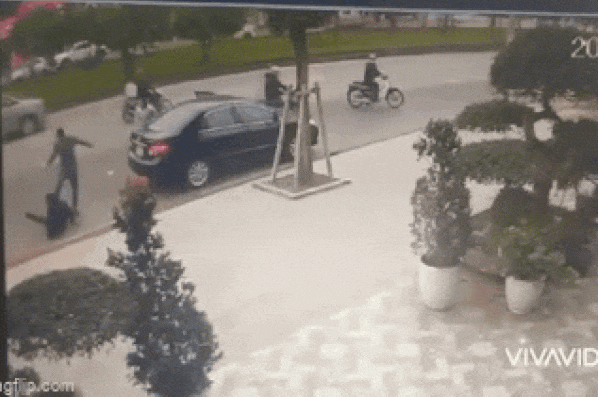 Xe của chị H. đi được một đoạn khoảng hơn 1km thì dừng lại. Chớp thời cơ, tên trộm liền phi xe máy xông đến và nhanh chóng mở cửa xe ô tô của chị H., định cướp túi tiền.