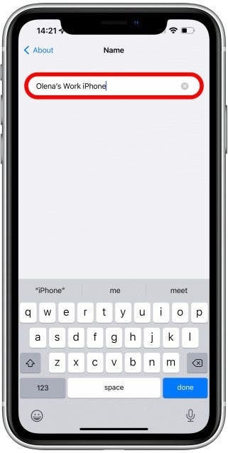 Người dùng nhập vào tên mới cho iPhone.