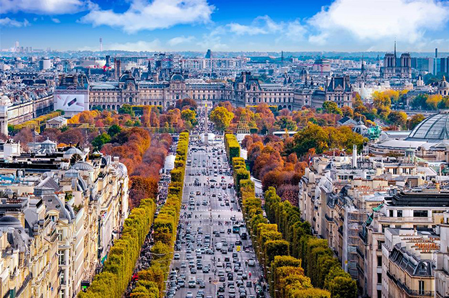 Avenue des Champs-Élysées, Paris, Pháp: Với khoảng 300.000 người đến thăm mỗi ngày, Avenue des Champs-Élysées là một bức tranh hoàn hảo. Chỉ dài 2km, đại lộ rợp bóng cây này nối liền hai điểm tham quan chính của Paris là Place de la Concorde và Khải Hoàn Môn.