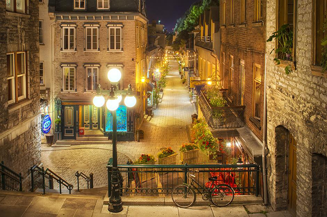 Rue du Petit-Champlain, Quebec, Canada: Mặc dù thành phố Quebec có vô số những con đường lãng mạn, nhưng Rue du Petit-Champlain là đẹp nhất, đặc biệt là vào dịp Giáng sinh khi nó được bao phủ trong ánh đèn lung linh.