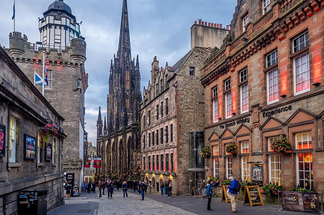 The Royal Mile, Edinburgh, Vương quốc Anh: Royal Mile là trung tâm của lịch sử Scotland trong nhiều thế kỷ. Một trong những điểm đến nổi tiếng nhất đối với khách du lịch, con phố có các cửa hàng, quán rượu cũng như các điểm tham quan hàng đầu như The Real Mary King's Close, Camera Obscura và World Of Illusions.