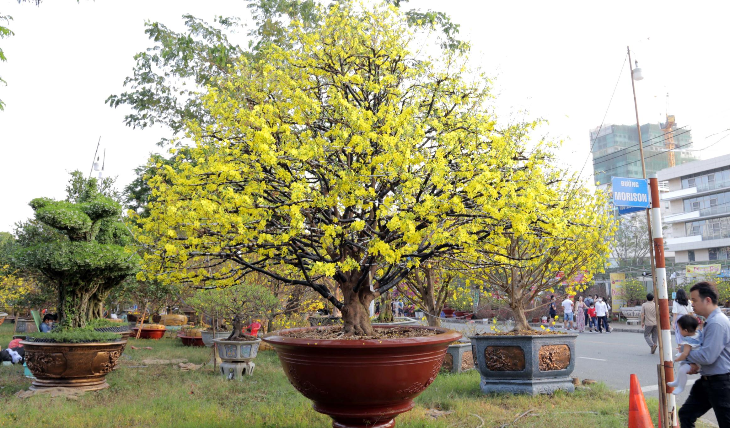 Tại chợ hoa Xuân ở Phú Mỹ Hưng (quận 7, TP.HCM), xuất hiện nhiều “cụ” mai vàng có tuổi từ vài chục đến 100 năm, đang chào giá bán từ vài trăm triệu đến vài tỉ đồng.