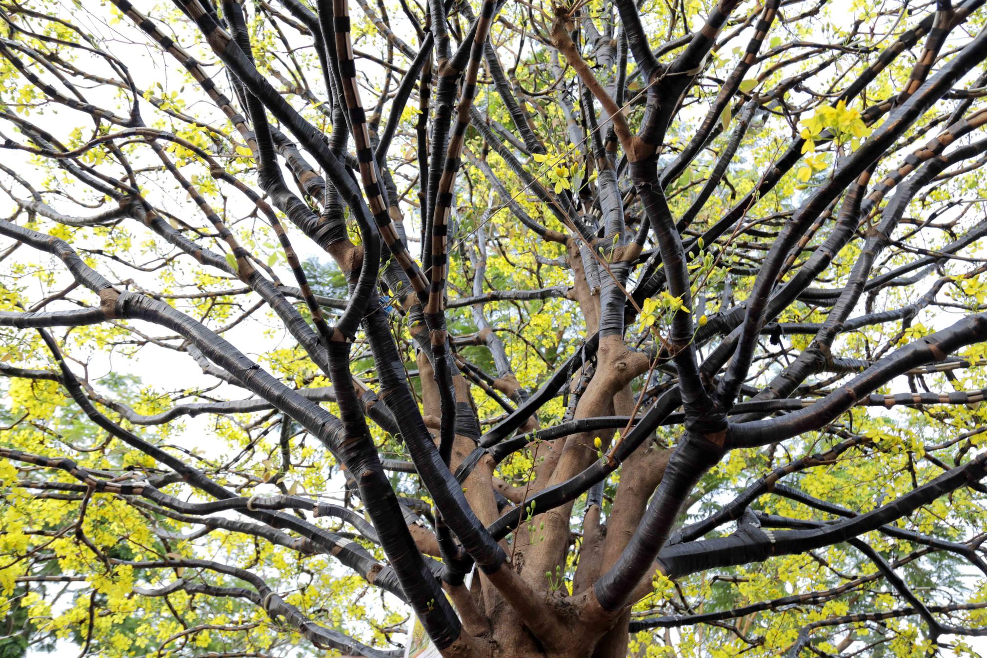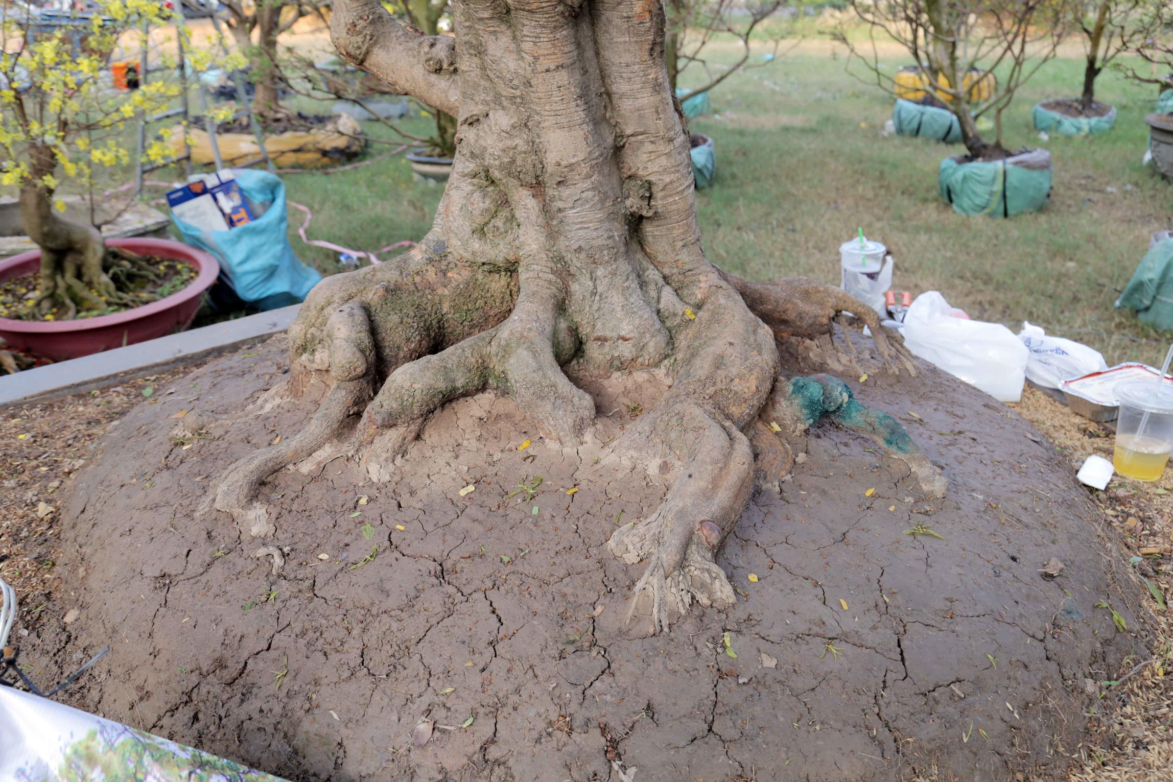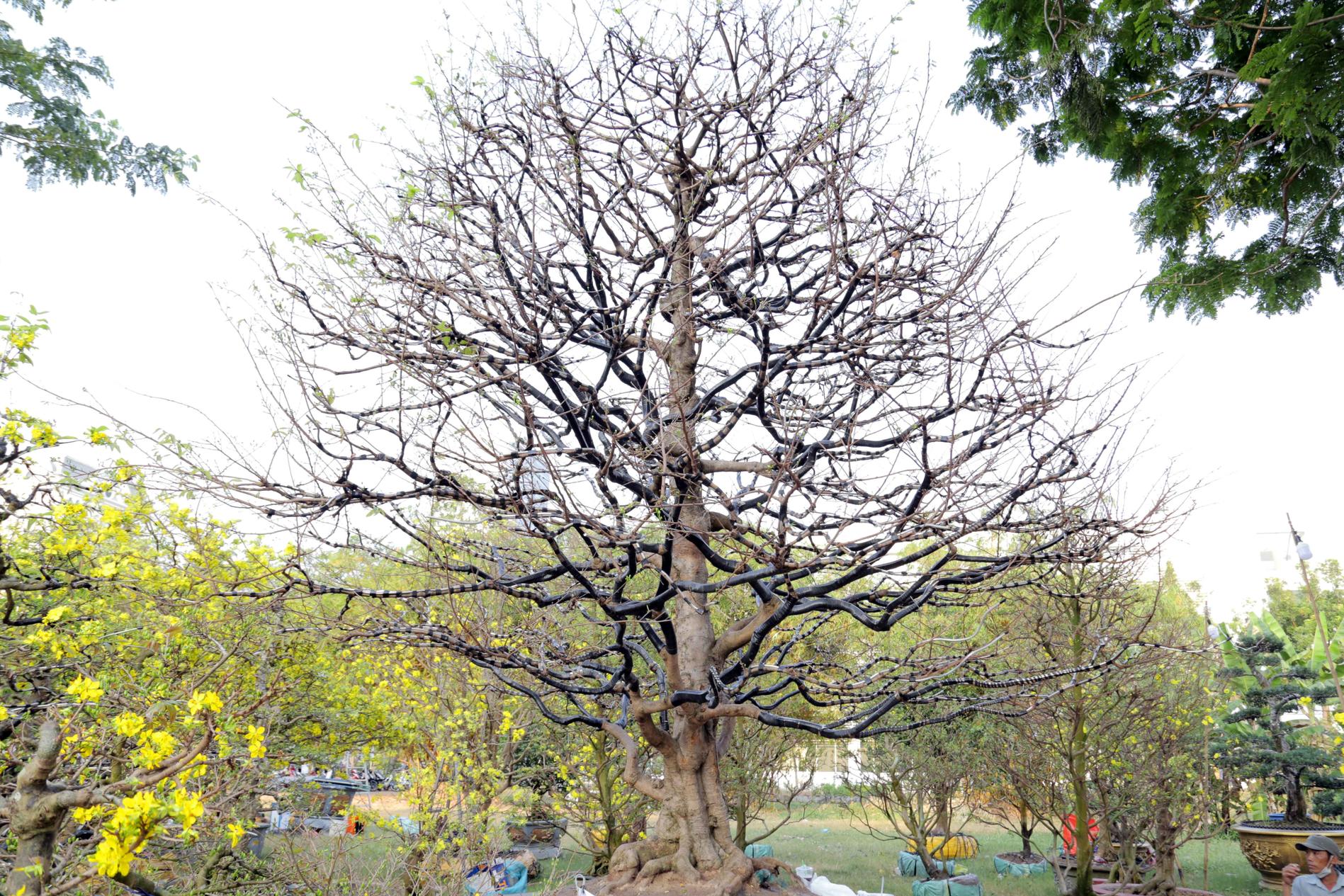Phần gốc cây mai to gần bằng thùng nước sơn tường. Đây là giống mai nguyên thủy của Nam bộ.