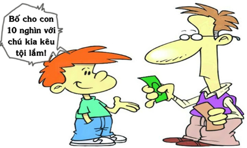 Đến lúc này ông bố chợt hiểu ra, nghĩ rằng con mình có lòng thương người nên vội móc trong túi ra cho Tèo 10 nghìn. Đưa tiền xong ông hỏi: