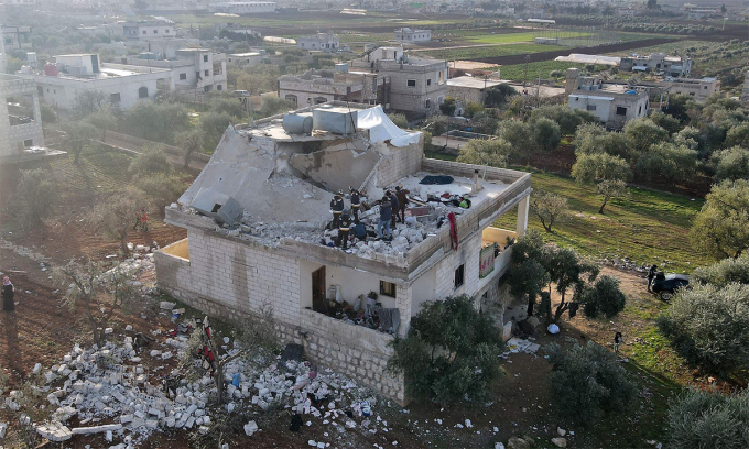 Căn nhà nơi thủ lĩnh IS al-Qurashi ẩn náu sau khi đặc nhiệm Mỹ đột kích ngày 3/1. Ảnh: AFP.