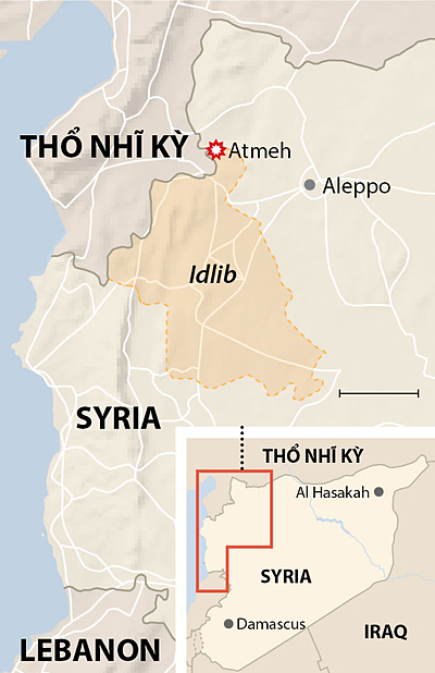 Vị trí thị trấn Atmeh. Đồ họa: NY Times.