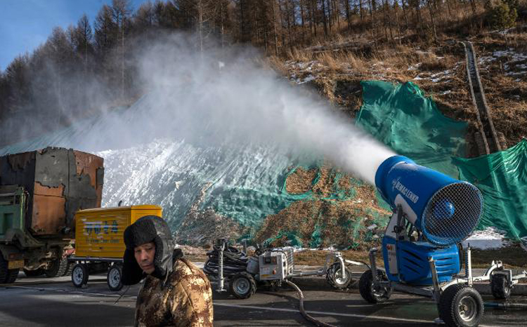 Máy tạo tuyết tại cuộc thi ở thành phố Zhangjiakou vào tháng 11/2021. Ảnh: CNN