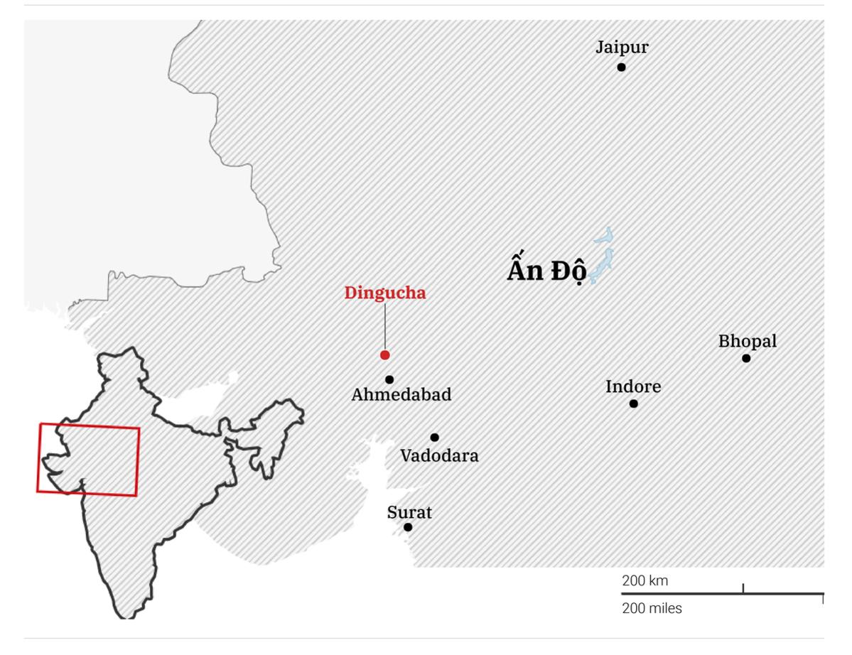 Bản đồ vị trí làng Dingucha, Ấn Độ, quê hương của Jagdish Patel. Ảnh: The Guardian.