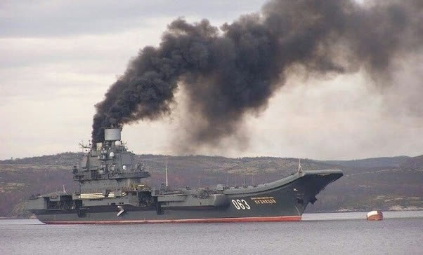 Ông Sutton cho biết, khói trên tàu sân bay Kuznetsov được hình thành do con tàu chạy bằng nhiên liệu dầu.