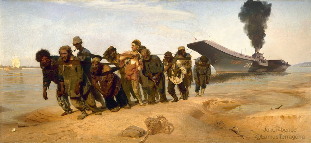 Bức ảnh của danh họa Ilya Repin bị chế thành tác phẩm châm biếm tàu sân bay Nga.