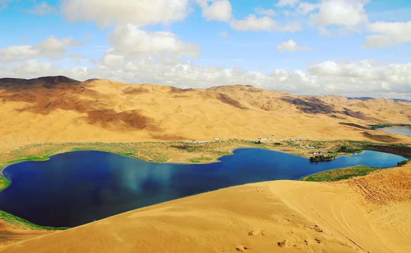 Những đồi cát cao chót vót, khó đoán cùng những hồ nước và vùng đầm lầy yên tĩnh tạo thành một phong cảnh hữu tình có 1-0-2 cho nơi này. Những cồn cát khổng lồ ở giữa sa mạc dài vô tận, những đồi cát nhấp nhô như sóng tạo nên khung cảnh rất kỳ vĩ.