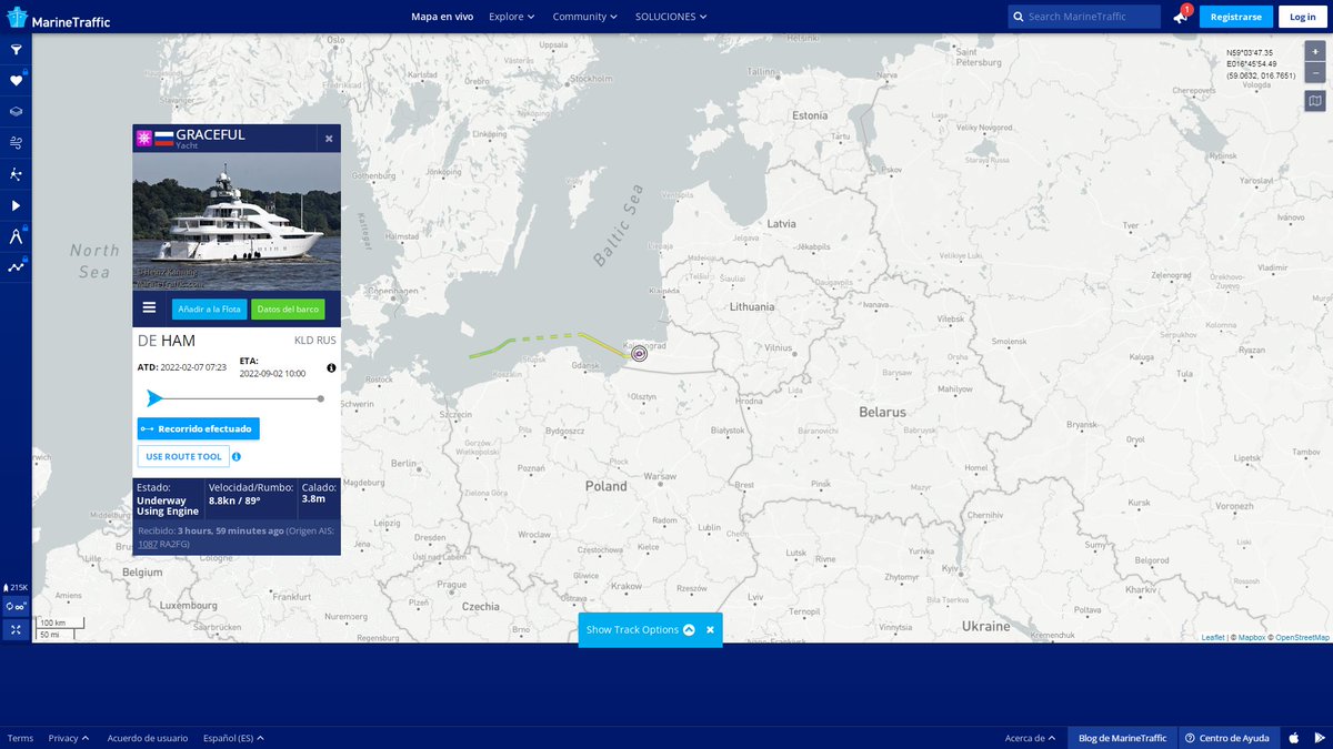 Theo dữ liệu hàng hải công khai, siêu du thuyền Graceful hiện đang trên đường đến vùng Kaliningrad.