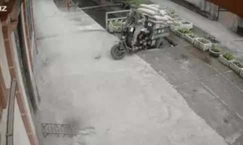 Vụ tai nạn đã được camera an ninh ghi lại. Thời điểm này, chiếc xe 3 gác chở theo hơn một tấn xi măng đang lùi để quay đầu. Khi di chuyển vào khu vực nắp bê tông bắc ngang qua một đường cống, có lẽ do chở tải trọng lớn nên nắp cống đã không chịu được sức nặng và bị sập.