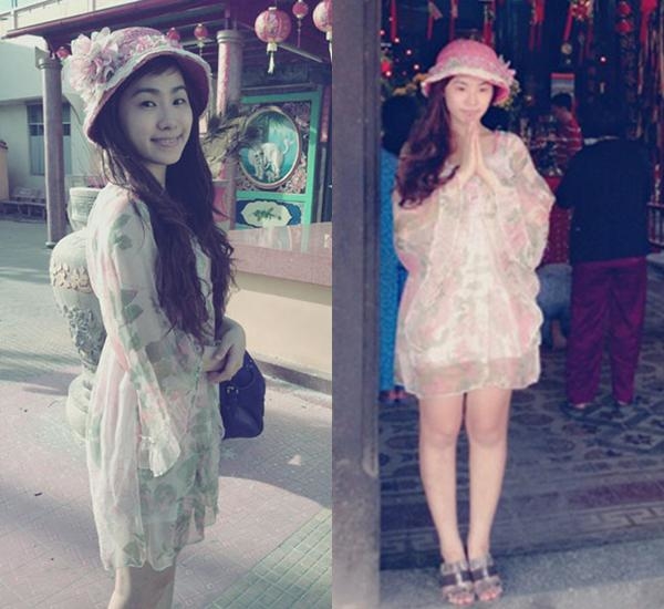 Chiếc váy có phần ngực táo bạo của hot girl Sun Ht khiến cô nàng nhận về nhiều lời góp ý. Nếu đây là chiếc váy để đi chơi, nó giúp hot girl Hà thành tôn được vóc dáng lẫn vẻ trẻ trung. Tuy nhiên, khi diện nguyên set đồ này đi tới chốn linh thiêng lại không phù hợp.