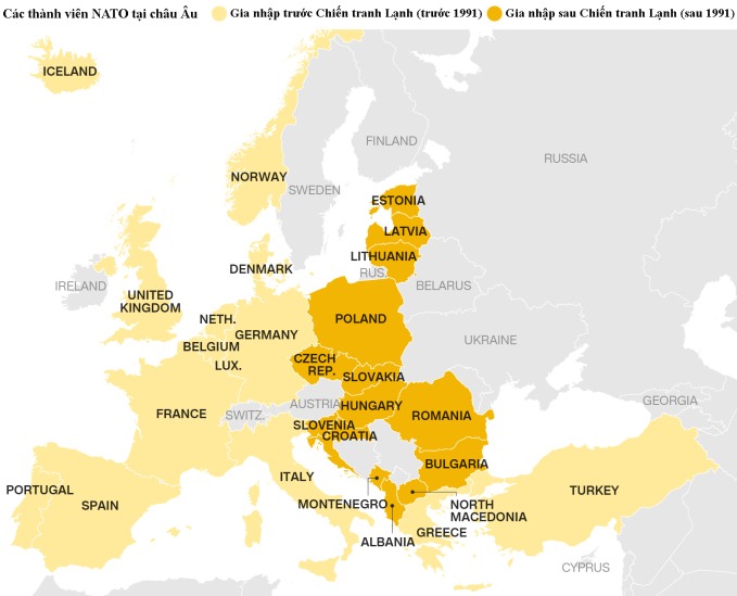 Quá trình mở rộng của NATO tại châu Âu sau Chiến tranh Lạnh. Đồ họa: CNN.