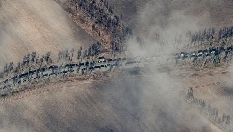 Hình ảnh vệ tinh do Maxar cung cấp cho thấy đoàn xe quân sự kéo dài của Nga đang tiến về Kiev. Ảnh: Maxar