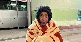 Vì thời tiết rất lạnh nên khi qua cửa khẩu Ba Lan anh Hạnh phải dùng chăn quấn để giữ ấm (Ảnh: NVCC).