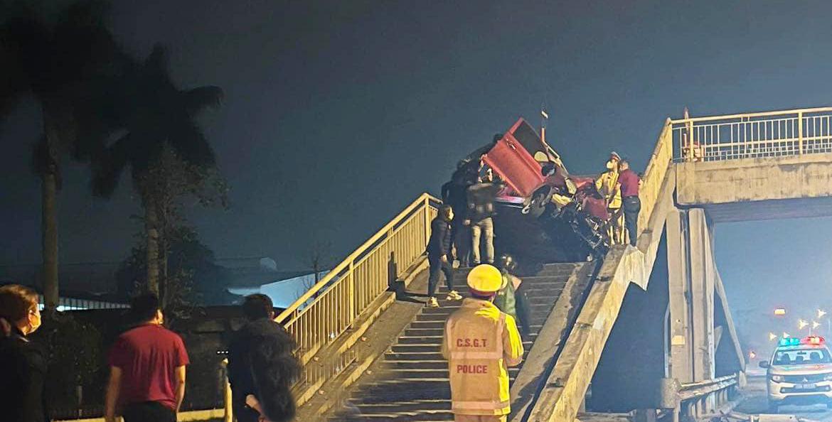 Vụ tai nạn xảy ra trên quốc lộ 5, đoạn qua phường Bần Yên Nhân, thị xã Mỹ Hào, Hưng Yên. Chiếc Ôtô 5 chỗ biển số Bắc Giang đi ngược đường trong làn thô sơ hướng Hà Nội - Hải Dương. Chiếc xe sau đó mất lái, lao lên vỉa hè rồi tiếp tục tông vào cầu vượt cho người đi bộ.