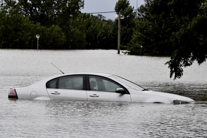 Ôtô ngập trong nước lũ ở Camden, ngoại ô Sydney, hôm 8/3. Ảnh: AFP