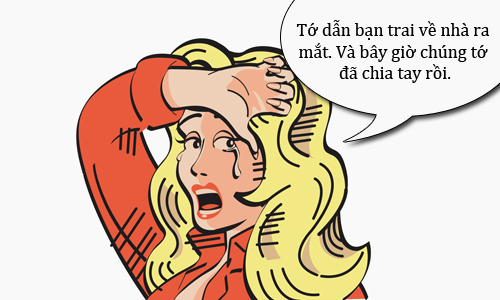 – Cuối tuần vừa rồi tớ dẫn bạn trai về nhà ra mắt. Sau chuyến đi chúng tớ đã chia tay rồi.
