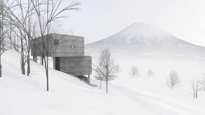 Các kiến trúc sư dựng nên ngôi nhà nghỉ dưỡng này tại Hokkaido - hòn đảo lớn thứ hai Nhật Bản - với cấu trúc hình chữ L, liên kết ngôi nhà với sườn đồi. Với hai hình lập phương đặt lệch lên nhau, họ cố tình tạo cảm giác như ngôi nhà trượt xuống dưới dốc. Lối vào ngôi nhà cũng như những không gian kín đáo được đặt ở hình hộp bên dưới, dẫn lên một không gian sinh hoạt và gian bếp.