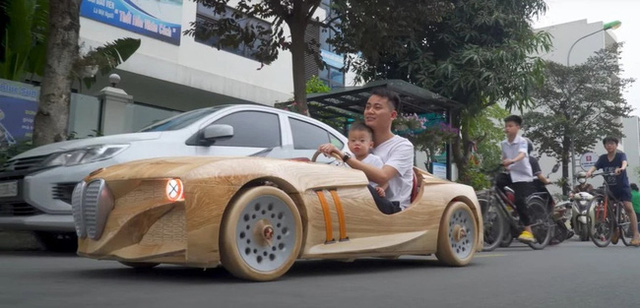 Không chỉ thế chiếc xe này còn có đèn pha và đèn hậu đều có thể dùng được như một chiếc xe bình thường, có thể thấy chiếc xe được thiết kế tỉ mỉ và mất khá nhiều công sức, bên trong chiếc xe có đầy đủ 2 ghế ngồi, cần số, bàn đạp, nút bật đèn. Anh Đạo chia sẻ rằng để có thể chạy được thì chiếc xe bằng gỗ này phải dùng mô tơ điện 24V và xe có khối lượng là 350kg. Hiện tại chi phí của chiếc xe này vẫn chưa được hé lộ nhưng nhìn qua thì chắc hẳn ai cũng biết số tiền bỏ ra để mua vật liệu cũng không hề rẻ chút nào.