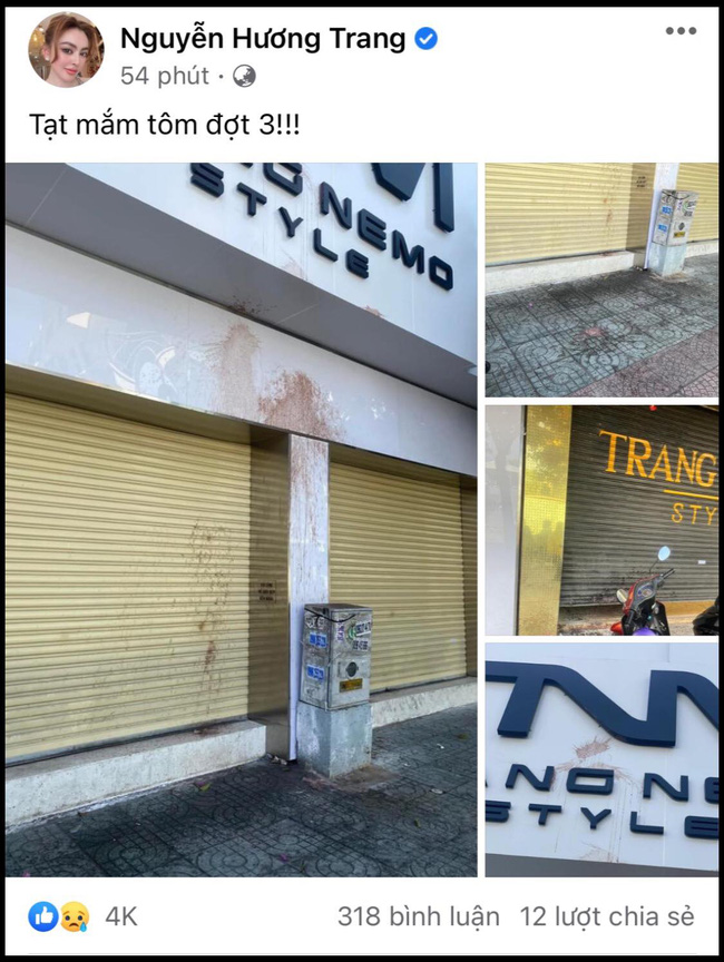 Nhưng cứ tưởng mọi chuyện đã lắng xuống thì mới đây trên trang cá nhân của mình Trang Nemo cho biết shop quần áo của cô lại bị tạt mắm tôm lần thứ 3.
