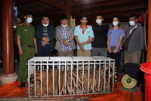 Khoảng 21h ngày 17-3, Công an huyện Điện Biên phát hiện, bắt quả tang 3 đối tượng đang dùng kích điện và dao để giết 1 con hổ.
