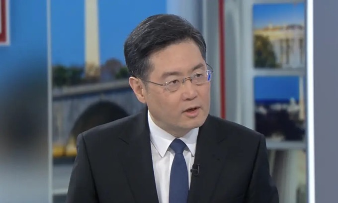 Đại sứ Trung Quốc tại Mỹ Tần Cương trả lời phỏng vấn kênh CBS hôm 20/3. Ảnh: CBS