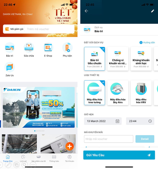 Đại diện Daikin cho biết. App Daikin Vietnam sẽ kết nối trực tiếp người tiêu dùng với kỹ thuật viên chính hãng của Daikin, để thực hiện các gói bảo trì máy điều hòa. Giúp nâng cao hiệu suất làm việc của máy và chất lượng không khí trong nhà.