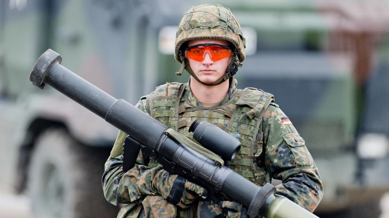 Một binh sĩ cầm vũ khí chống tăng tại một thao trường ở Đức năm 2016 (Ảnh: Getty).