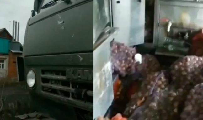 Đoạn video do quân đội Ukraine quay cho thấy một chiếc xe bọc thép KAMAZ được chuyển đổi thành bếp chiến trường phục vụ binh lính Nga, theo Mirror.