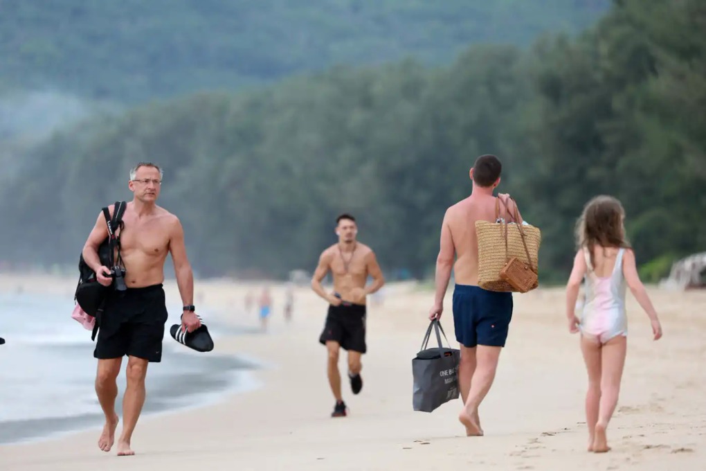Du khách đi dạo trên một bãi biển ở Phuket, Thái Lan. Ảnh: Reuters