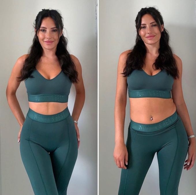 Trên tài khoản Instagram với hơn 700.000 lượt theo dõi, Georgie đăng hai bức ảnh cô mặc cùng một bộ đồ nhưng có hiệu ứng thị giác hoàn toàn khác biệt. Người đẹp giải thích về tầm quan trọng của ánh sáng khi chụp hình: "Nếu bạn đứng nghiêng người và chụp từ dưới lên, việc quay mặt về phía bóng râm nghĩa là phần khắc nghiệt nhất của ánh nắng sẽ chiếu vào cơ thể. Còn khi bạn hướng về mặt trời, nó sẽ làm mịn da và tạo cảm giác cơ bắp săn chắc hơn".