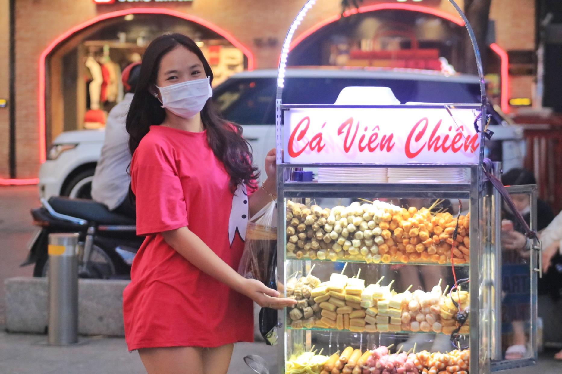 Theo lời chị chủ, gánh cá viên chiên này đã tồn tại gần 14 năm ở khu vực phố đi bộ này, ban đầu do cha của chị mở bán. Từ nhỏ, chị cũng đã theo ông phụ bán cá viên.