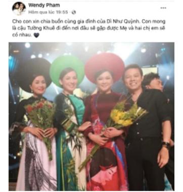 Ngay khi biết tin buồn, Wendy Phạm - con gái cố nghệ sĩ Phi Nhung đã chia sẻ hình ảnh kỉ niệm của mẹ cùng Như Quỳnh, Tường Khuê và bày tỏ: "Cho con xin chia buồn cùng gia đình của dì Như Quỳnh. Con mong là cậu Tường Khuê đi đến nơi đâu sẽ gặp được Mẹ và hai chị em sẽ có nhau".