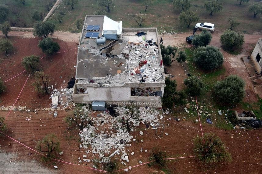 Ngôi nhà thủ lĩnh tối cao IS Abu Ibrahim al-Hashimi al-Qurashi ẩn náu tan hoang sau cuộc đột kích của Mỹ ở Idlib, Syria hồi tháng 2. Ảnh: AFP.