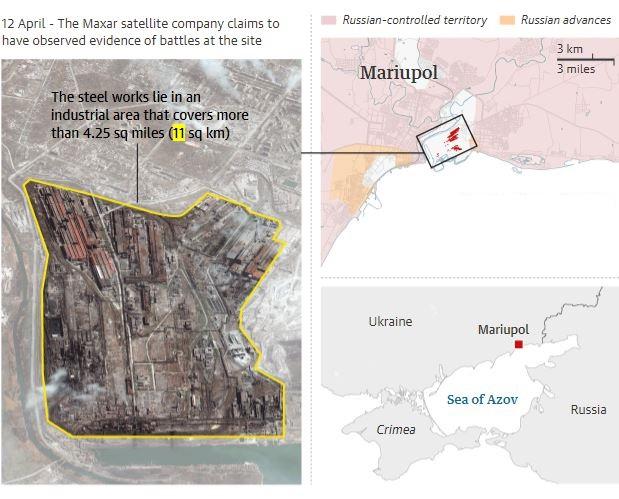 Sau gần 60 ngày bị Nga tấn công và bao vây. Các lực lượng Ukraine ở Mariupol đang cố thủ trong các đường hầm chằng chịt bên dưới nhà máy thép khổng lồ Azovtal. Đây được xem như “pháo đài” cuối cùng của họ ở thành phố cảng chiến lược bên bờ biển Azov.