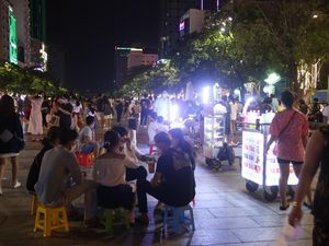 Những người này cho rằng việc Trang chụp ảnh liên quan đến quầy hàng có thể ảnh hưởng trực tiếp đến cuộc sống, mưu sinh của họ nên gây ra mâu thuẫn trên. Sau khi trao đổi lại với nữ du khách, nhóm người này giải tán và tiếp tục buôn bán.Theo quan sát của Trang, phố đi bộ không chỉ có một vài xe bán hàng lưu động mà có khoảng 30 chiếc khác trải dọc lòng quảng trường. Các xe này bày bán đa dạng mặt hàng như đồ ăn vặt, nước giải khát, đồ chơi trẻ em... Người bán đông đúc, thực khách ngồi ăn tại chỗ, cộng thêm các hoạt động chạy xe điện, trượt ván của các du khách tạo nên khung cảnh lộn xộn.